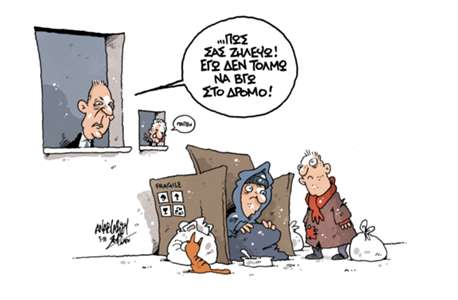 Με ένα σκίτσο απαντάει η εφημερίδα Αυγή στα όσα είπε ο υπουργός Οικονομικών Γιάννης Στουρνάρας